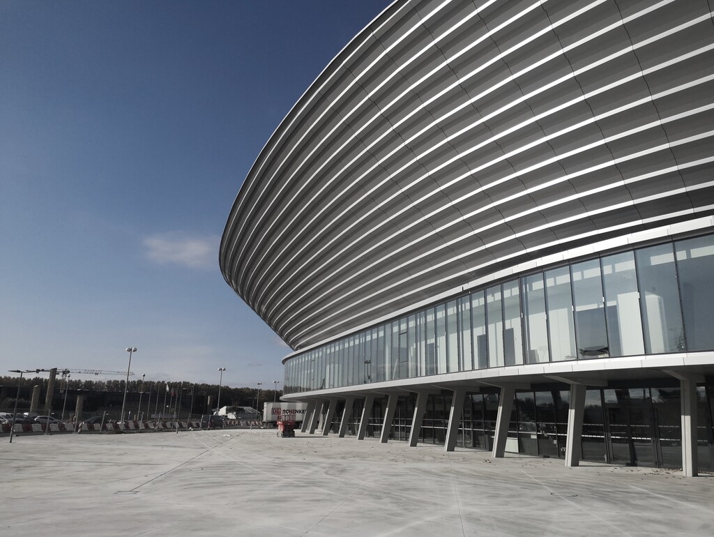 Type et caractéristiques du bâtiment : Construction d’un toit mobile avec des ailes fait de toiles micro-perforés), Cabine TV, Cabines Radio, salle d’interview, salle de presse.