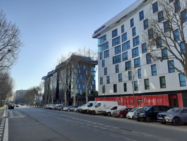 Jean-Michel Wilmotte signe les deux nouveaux établissements hôteliers du groupe Accor. Le premier, nommé Mama Paris West, compte 207 chambres dans l’esprit des Mama Shelter. Le second, un Novotel, dispose de 245 chambres dont 24 suites.